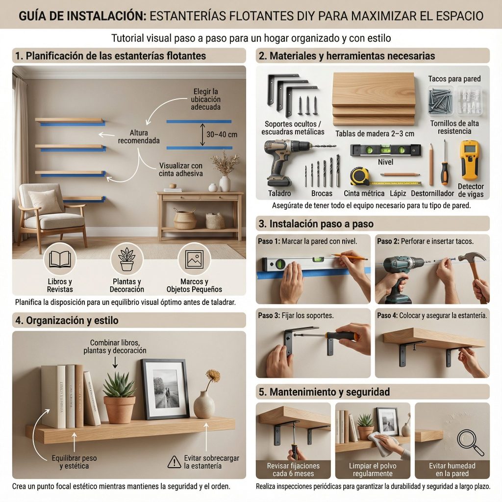 Si sigues estas recomendaciones paso a paso, lograrás estanterías flotantes seguras, resistentes y estéticamente impecables que harán tu hogar más funcional y armonioso.